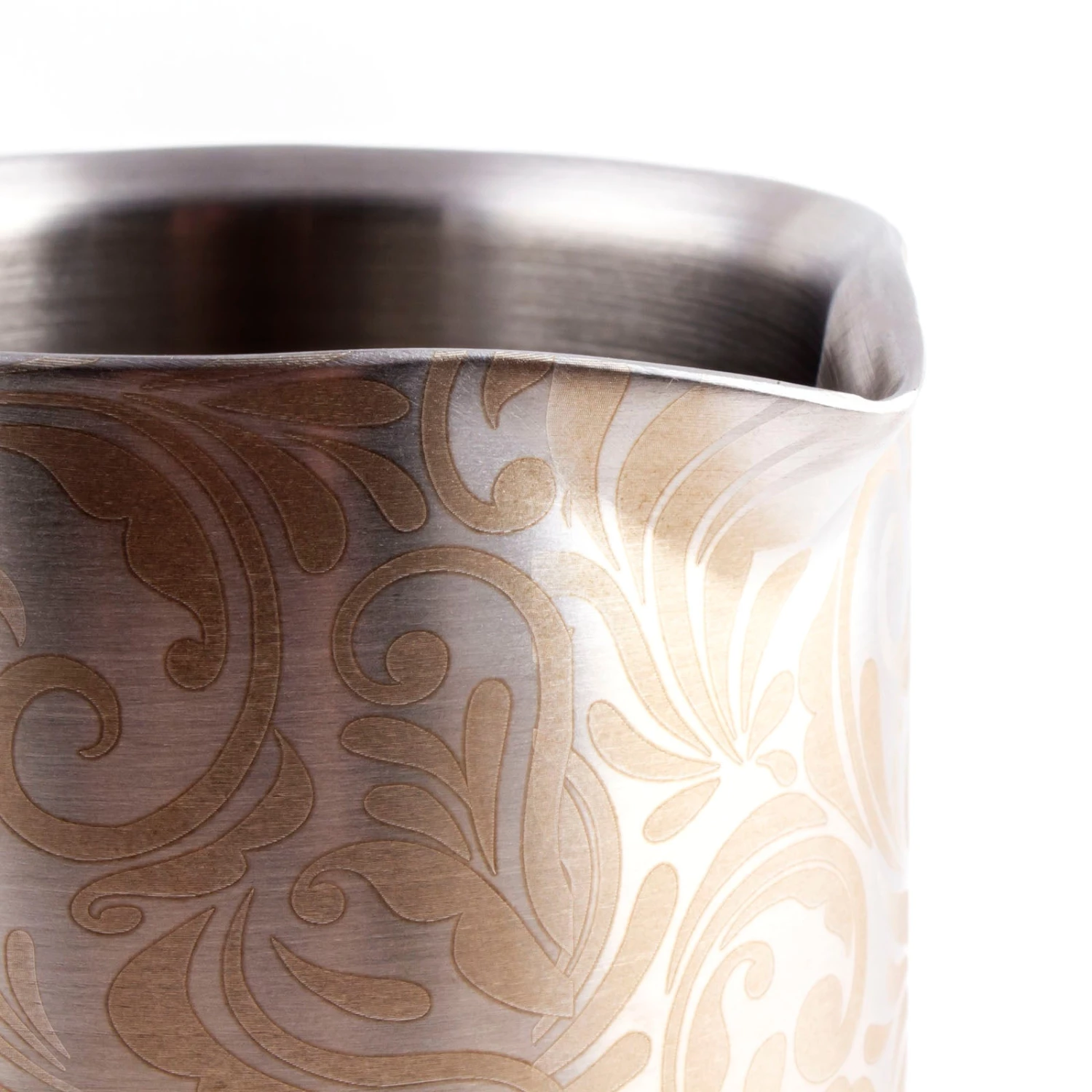 This BarConic® mixing glass is a beautiful piece to have behind your bar. It is made of durable stainless steel and features beautiful lightly etched floral patterns all around the glass. Featuring a spouted rim, this mixing glass allows for a convenient pour. It has a liquid capacity of 18 ounces and a measurement of 5.25″ in height with a rim diameter of 3.5″.