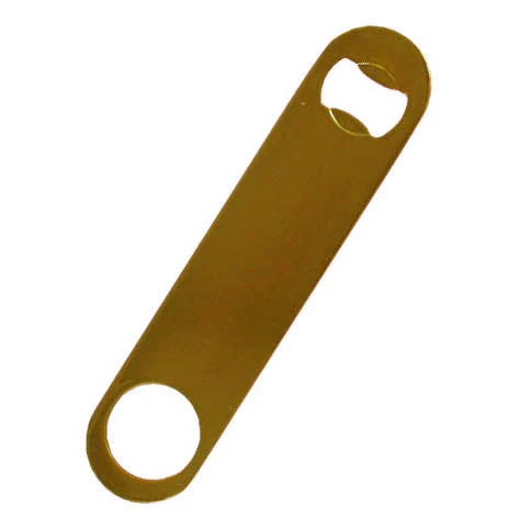 Featuring one on the most widely used Bottle Openers in the industry, our standard Speed Openers are made from a Thick-Gauge, High-Quality Stainless Steel Material. These openers are very popular among bartenders world-wide. Though it is made from a thick gauge “material” the opener design is thin enough to slip into your back pocket for easy and quick access. This speed bottle opener also features a candy gold reflective coating enhancing its design and style.