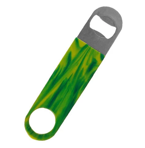 Featuring one on the most widely used Bottle Openers in the industry, our standard Speed Openers are made from a Thick-Gauge, High-Quality Stainless Steel Material. These openers are very popular among bartenders world-wide. Though it is made from a thick gauge “material” the opener design is thin enough to slip into your back pocket for easy and quick access. This speed bottle opener also features a green swirl vinyl rubber grip enhancing its design and functionality. NOTE: Swirl coloring is unique to each product. Color density, consistency and patterns may vary from what is pictured.