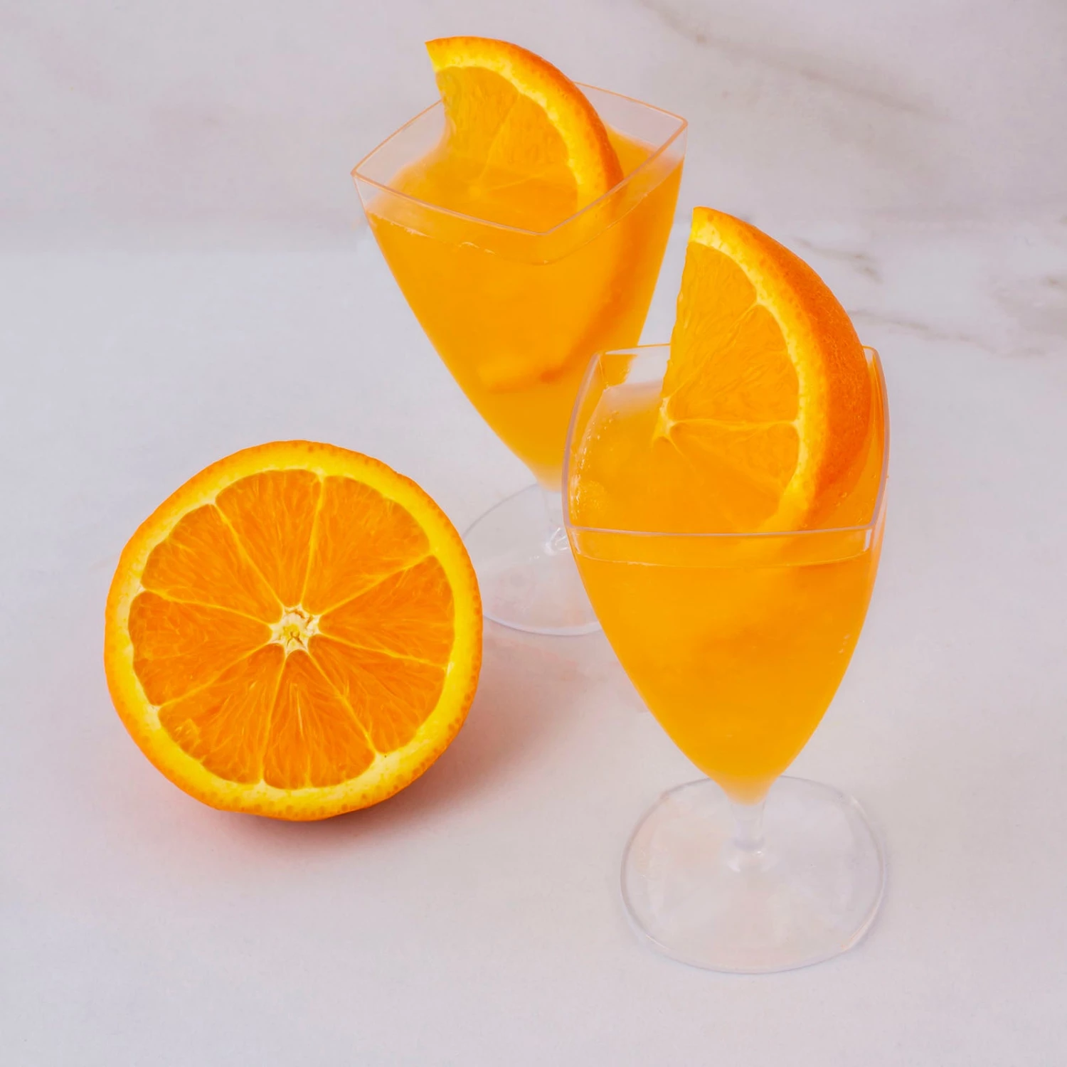 These small square shaped flutes are perfect for parties and gatherings. These cups are perfect for serving up miniature sized cocktails such as mimosas. They are made of clear plastic and are easily disposable. They can also be reused and are hand wash recommended. They measure 3.75″ tall and have a liquid capacity of 3 ounces. Each package comes with 6 cups.