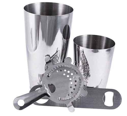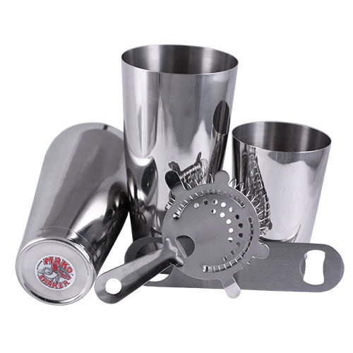 The classic stainless steel bar kit is an attractive and economical way to start into the bartending business or boost your home barware collection with durable, shiny, and practical tools. These are the indefensible bar accessories to have on hand, making them a great gift for bartending enthusiasts and bartending students. Available in 4 or 5 pieces.