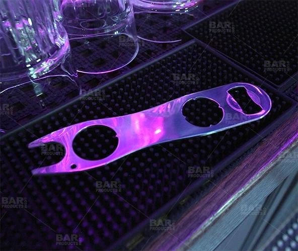 Every bartender knows how important it is to serve drinks quickly in a high volume bar environment. This opener allows bartenders the perfect all in one solution for bottle opening and cap / pourer removing. It is able to remove all stubborn free pourers including pull top spouts, twist beer caps / most twist soft drink caps and can unscrew screw top wine / spirit bottles. The Stainless Steel Multi Function Opener is lightweight and slender for fitting into your back pocket behind the bar so it is always there whenever you need it. It is made of strong stainless steel to last through years of use.
