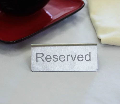 Make your VIP’s and special clients feel respected and appreciated with this quality stainless steel sign with black ink “Reserved” printed on both sides. The look of the stainless steel gives a professional and classy vibe to the table set up and trumps the commonly folded slip of paper with a hand written “reserved”.