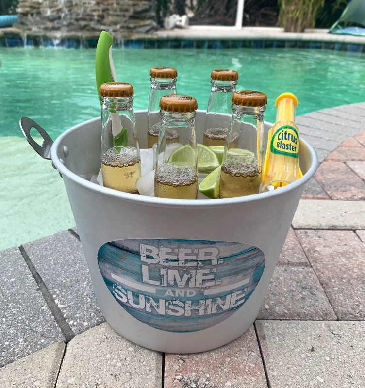 Get your Summer on all year around with this fun Beer Bucket Kit! This kit has everything you need to serve refreshing and delicious “summer style” cervezas. The bucket has a convenient opener built in right on the side. Cut up your limes with the paring knife and plunge them into your beer with the blaster! It is the perfect way to serve and enjoy Mexican style beers like Corona Extra® or Corona Light®!