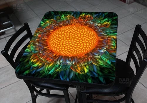 The Sunburst Daisy 24″ x 30″ Wood Table Top features the beautiful art of Digital Blasphemy, one of many Featured Artists here on BarProducts.com. Click here to see more Featured Artists.