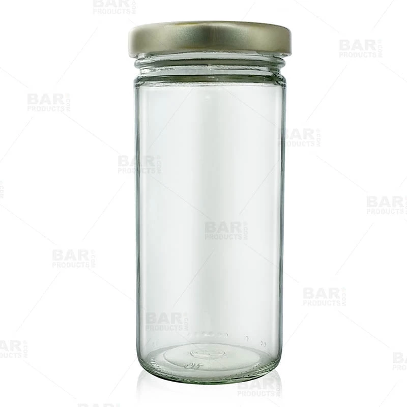 One of the biggest challenges in craft bartending is setting up your station so you can be most efficient throughout your entire service. All craft bartenders can relate to the many fresh ingredients that build their cocktail menu and signature recipes. Having a collection of craft bartending jars such as this tall clear style can definitely add a lot of benefits to your work station and the quality of your craft. Holding 8 ounces, this craft jar showcases a thick, high quality circular mold design along with a gold screw on lid, ensuring longevity and freshness.