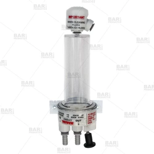 - Tecflo 10”H x 4”W x 3”D, 3/8” barb inlet/outlet, 3/16”