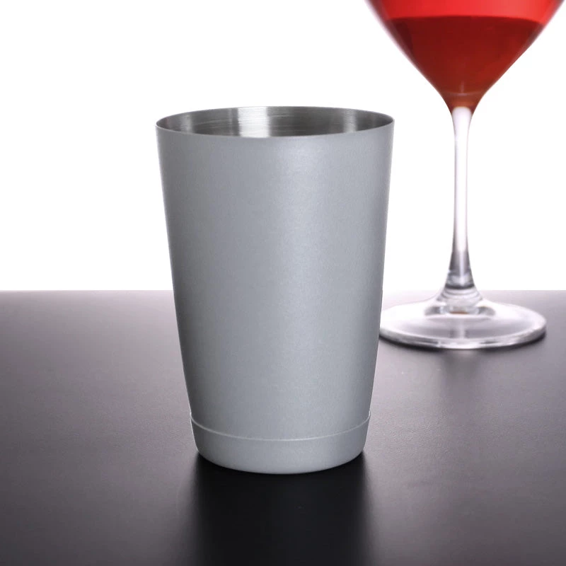 This “Textured Shadow Gray” 16 oz. Weighted Cocktail Shaker Tin (aka, cheater tin or short shaker) is made of durable stainless steel and features a textured coating all over the shaker for a superb grip. The gray matte textured coating prevents your fingers from sliding around, and offers the busy bartender more efficient performance behind the bar.