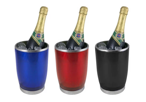 These colorful attractive wine coolers are double walled with a translucent outer shell. Built to hold their cold temperatures loner, these coolers are a classy way to present and serve wine at home or in a restaurant setting. Available in three colors: Red, Blue, and Black.