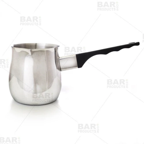 These 6 and 12 ounce Turkish Warmers are made of highly-reflective stainless steel with a heat resistant handle that can be used for warming many types of liquids such as milk, cream or water. Also referred to as a Turkish coffee pot it can be used to make Mediterranean style coffee and as a butter melting pot. This durable barista tool can stand up to the toughest holiday meal prep whether your are warming a savory sauce or heating sweet cream for coffee. These stainless steel Turkish Warmers are perfect for professional or at home use.