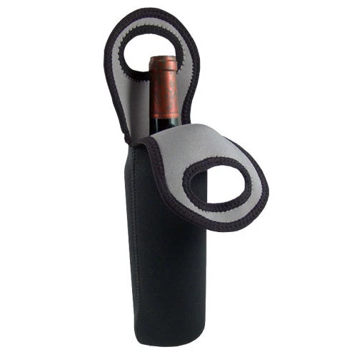 Like a jumbo “Cooler” big enough for one standard size bottle of the finest wine. Durable, stretchy 100% neoprene works like an insulating wetsuit, keeping wine cooler longer and preventing condensation from gathering. Also keeps bottles from clinking together. This wine tote has convenient built-in handles for easy-carrying.