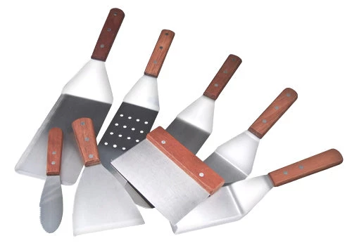 Hardwood handles make these commercial grade stainless steel kitchen tools popular choices for kitchens of all kinds, from bars, restaurants, hotels, diners, to home kitchens.