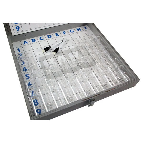 This game comes in a handy wooden box that allows you store all of the pieces right inside. It features 1 Official BattleshotZ board,1 Official BattleshotZ privacy shield with dry erase coordinate maps, 2 dry erase markers, 14 shot glasses, and Game Rules.