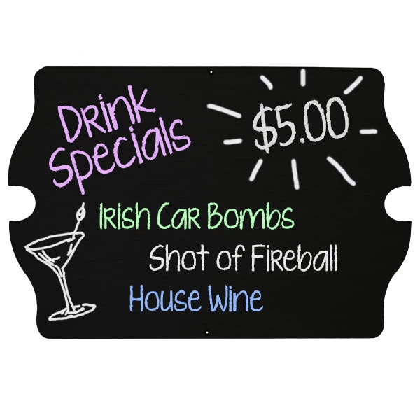 The Chalkboard Wood Tavern Sign is the perfect way to advertise daily shot, food, or drink specials. This fun sign can be hung on any wall vertically or horizontally. Your staff will love that they can change it as often as they wish.