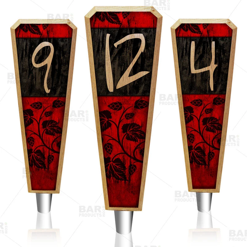 When it comes to our handcrafted oak wood beer tap handles, quality is definitely not something that has been overlooked. You will not find a better quality beer tap handle at this price anywhere else! We have taken the steps to showcase a smooth beveled outer frame, along with full color printing capabilities that will last through continuous wear and tear. This numbered red and black grunge design is fun, loud and rustic…. perfect for those hipster craft beer bars.